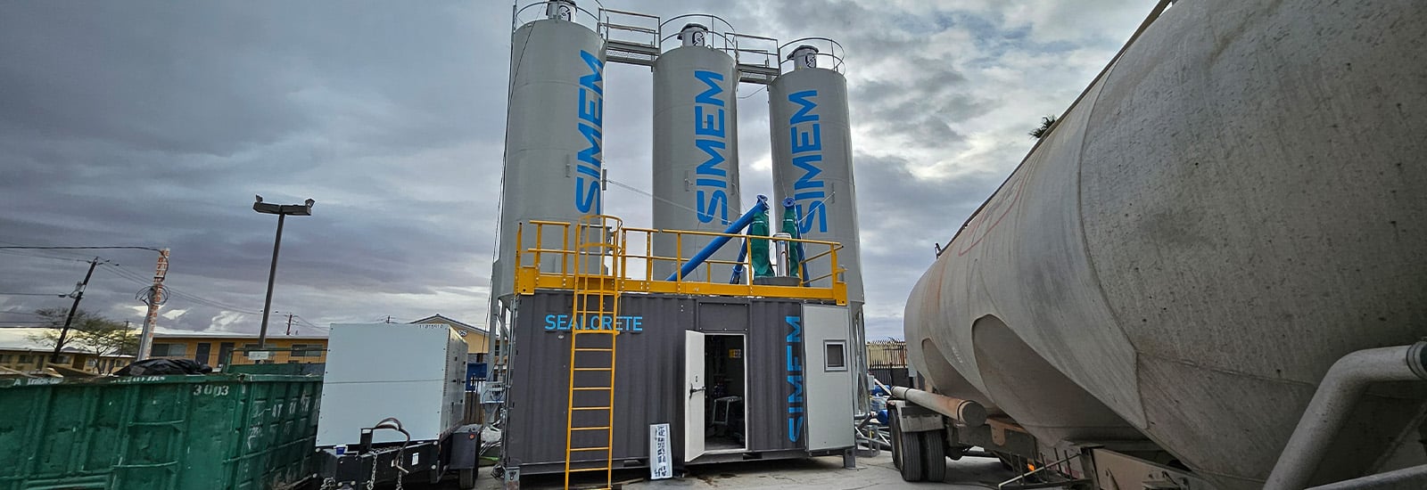 Simem’s SealCrete is a containerized series of grout plants featuring the VortiMix high-shear colloidal mixer. SealCrete’s combined contents includes: VortiMix Colloidal mixer, high pressure cleaning system, agitation tanks, pumps, and full automation. These self-contained units are optimized for easy transport, installation, and modular high-output production versatility.