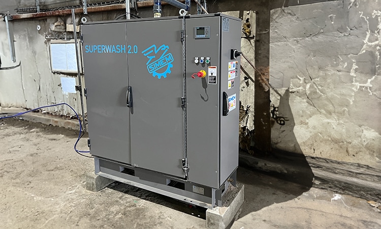 SuperWash, automatic washing unit, is available as option, with electric pumps, 16 gal water flow, 2900 psi water pressure, and touch screen control.
